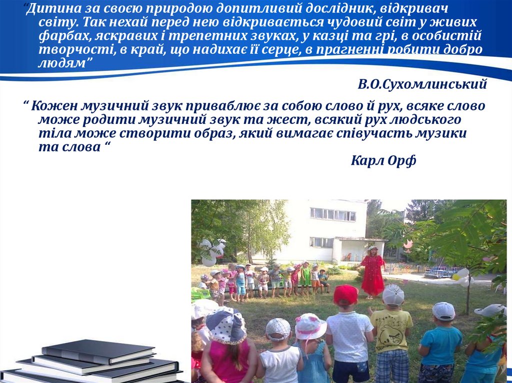 “Дитина за своєю природою допитливий дослідник, відкривачсвіту. Так нехай перед нею відкривається чудовий світ у живих