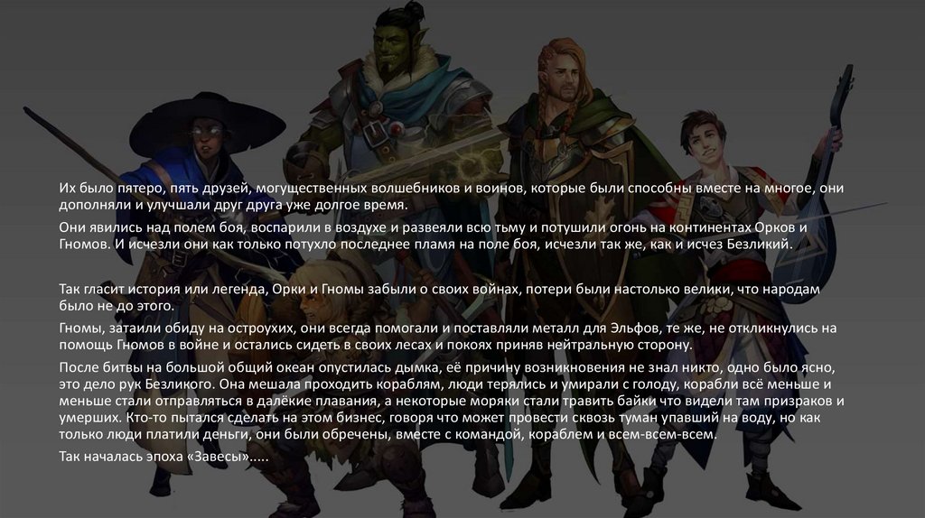 Их было пятеро, пять друзей, могущественных волшебников и воинов, которые были способны вместе на многое, онидополняли и улучшали друг друга уже долгое время.