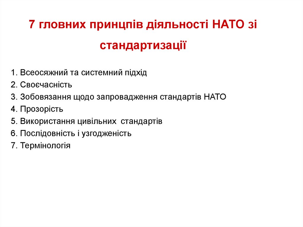 1. 7 гловних принцпів діяльності НАТО зі стандартизації