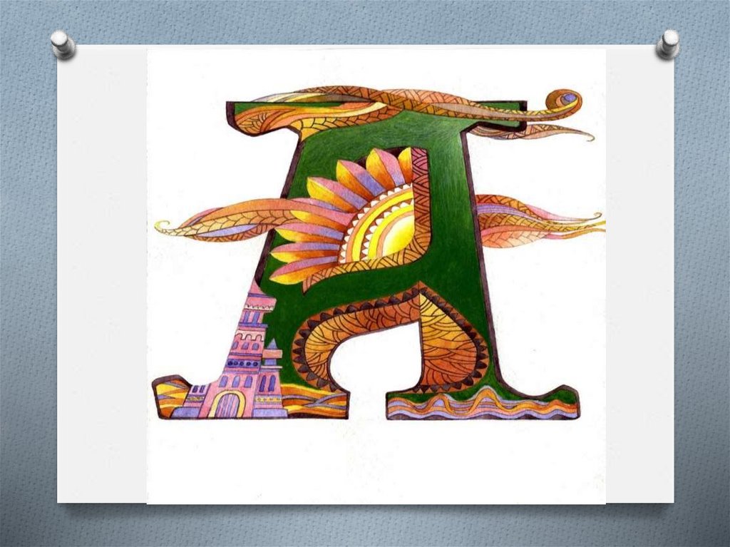 Изобрази в виде буквицы любую букву алфавита. Работай в технике графики, используя простой карандаш, фломастеры или цветные