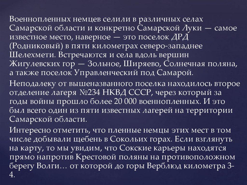 Военнопленных немцев селили в различных селахСамарской области и конкретно Самарской Луки — самое