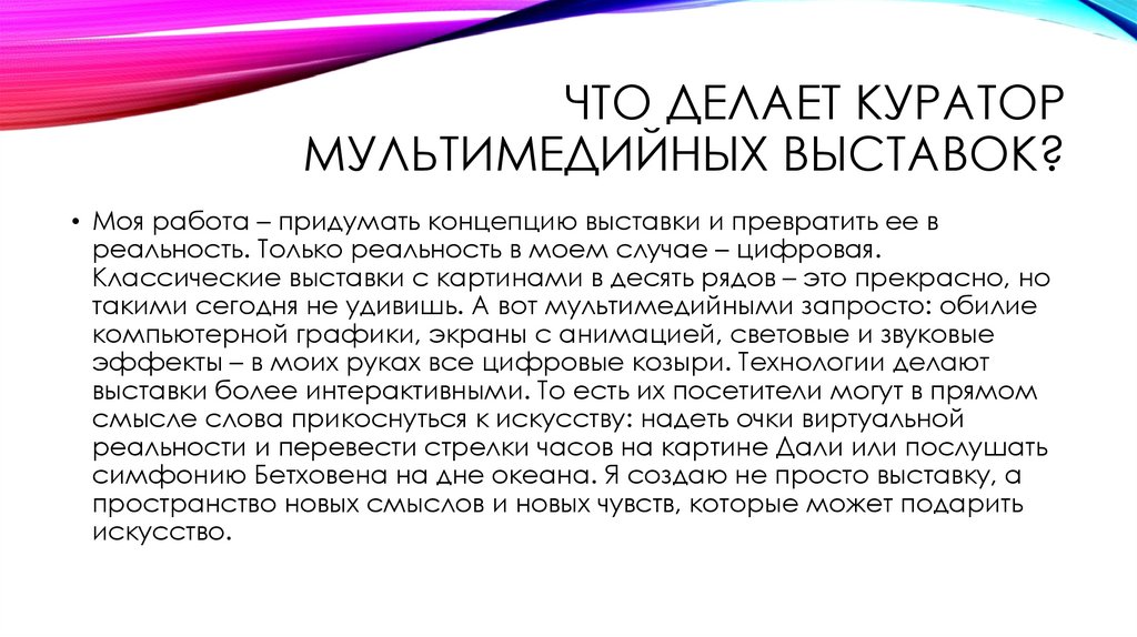 ЧТО ДЕЛАЕТ КУРАТОРМУЛЬТИМЕДИЙНЫХ ВЫСТАВОК?