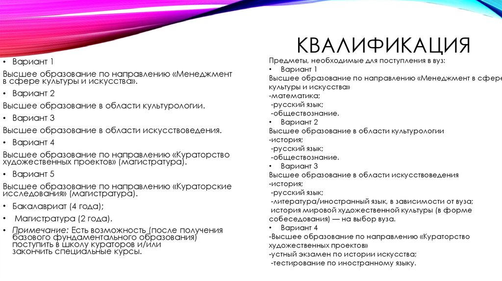 Высшее образование в области искусствоведения