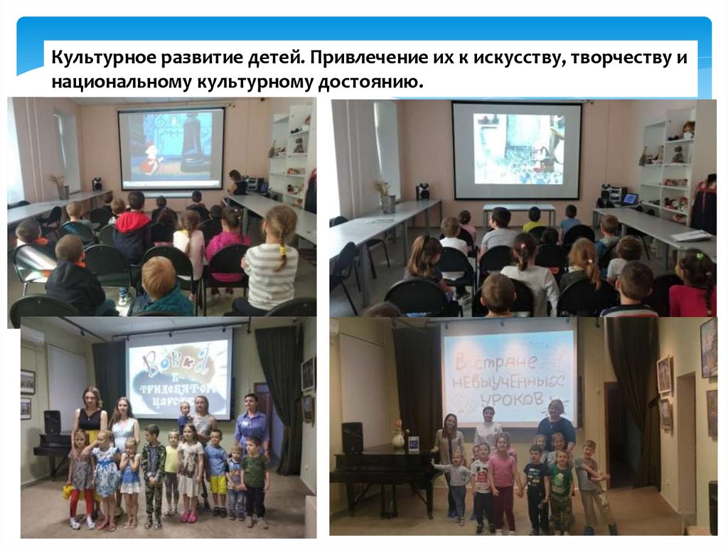 Культурное развитие детей. Привлечение их к искусству, творчеству инациональному культурному достоянию.