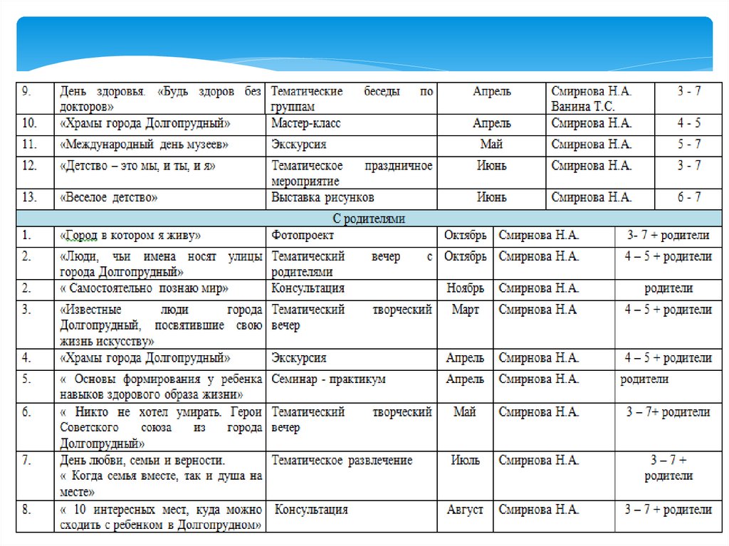1. «Эффективность планирования воспитательно - образовательного процесса с учетом мероприятий, запланированных к проведению в