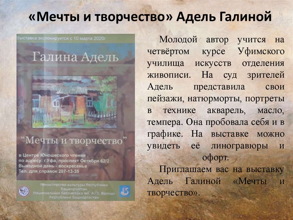 «Мечты и творчество» Адель ГалинойМолодой автор учится на