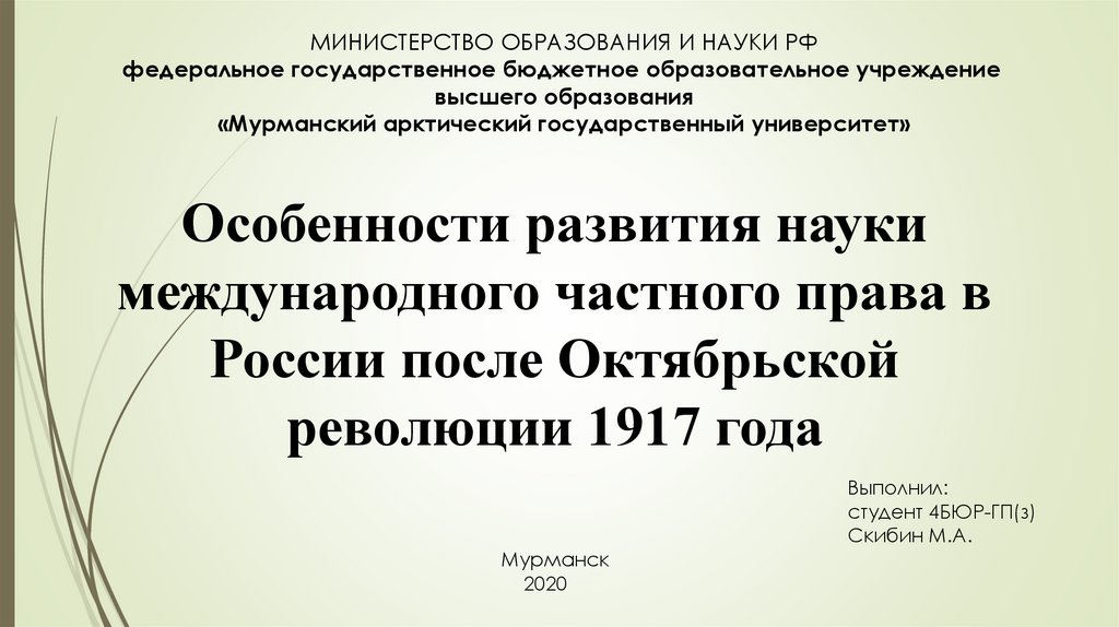 Особенности развития науки международного частного права в России после Октябрьской революции 1917 года