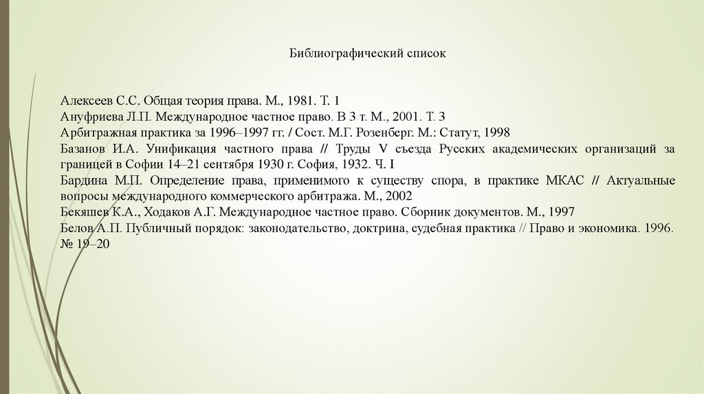 Библиографический списокАлексеев С.С. Общая теория права. М., 1981. Т. 1