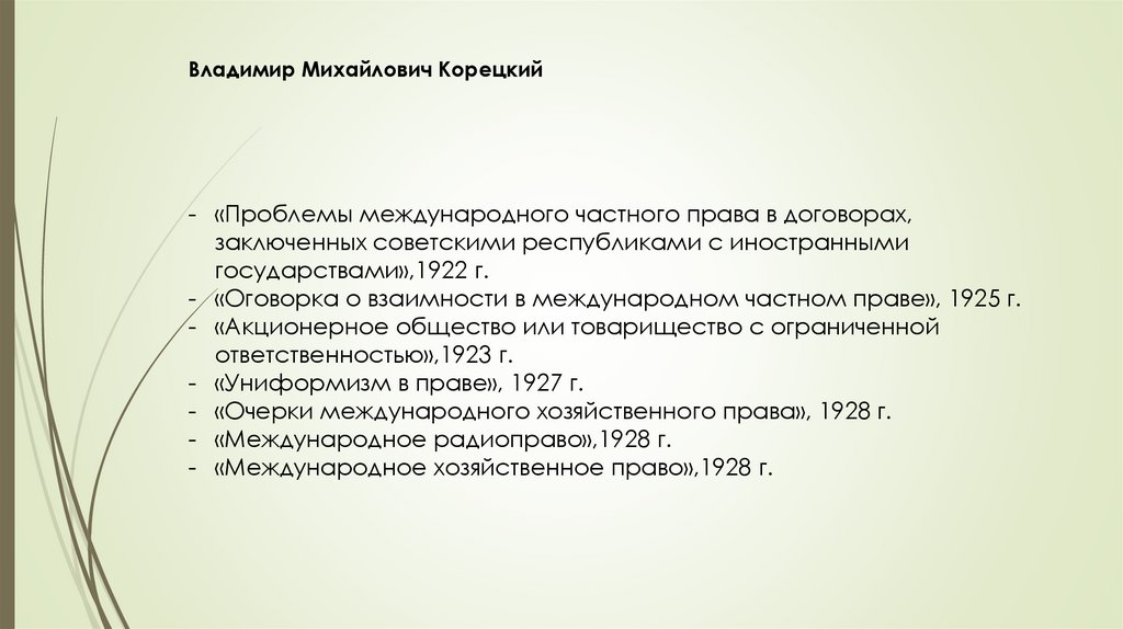 М.М. Агарков – «Ценность частного права», 1921 г.«Применение советским судом иностранного закона», 1938 г.