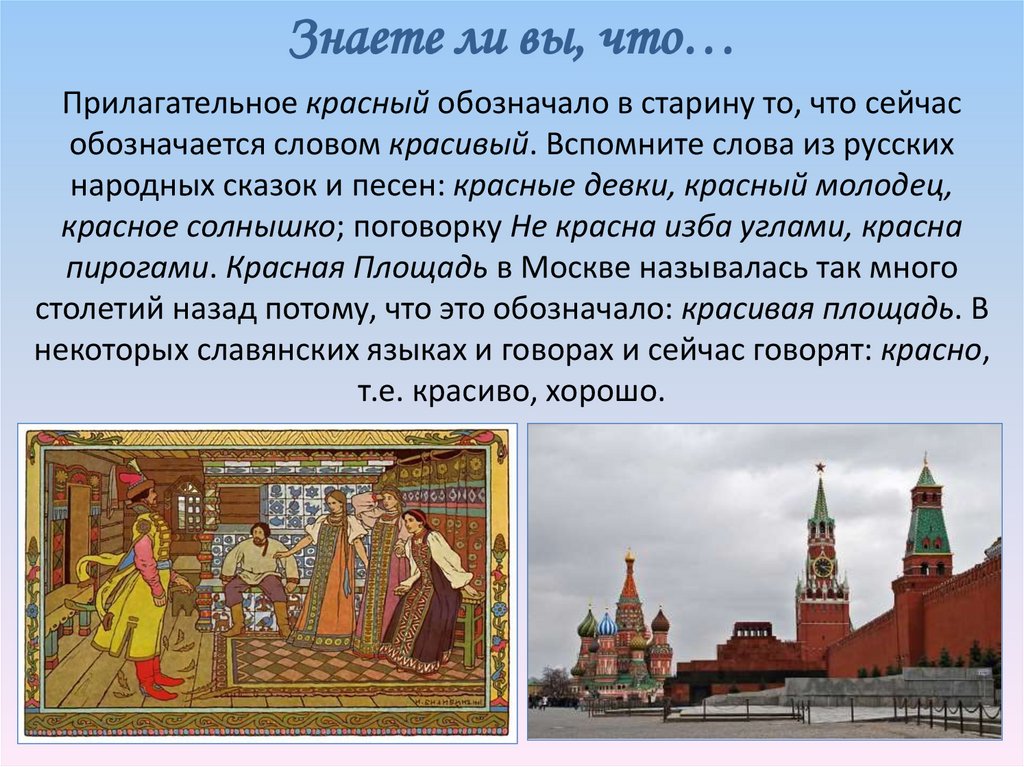 Знаете ли вы, что…Прилагательное красный обозначало в старину то, что сейчас