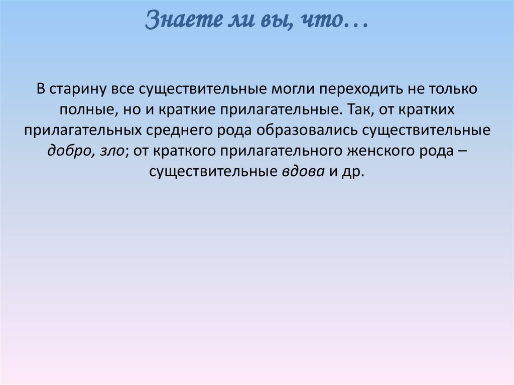 Знаете ли вы, что…В старину все существительные могли переходить не только