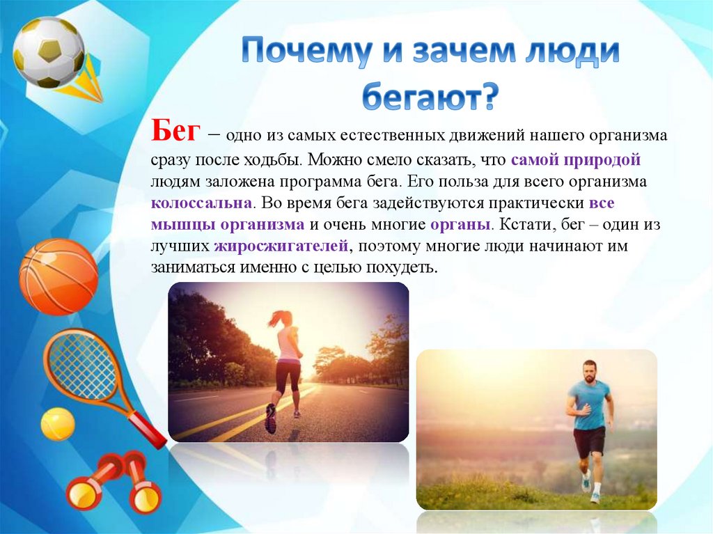 Бег – одно из самых естественных движений нашего организмасразу после ходьбы. Можно смело сказать, что самой природой