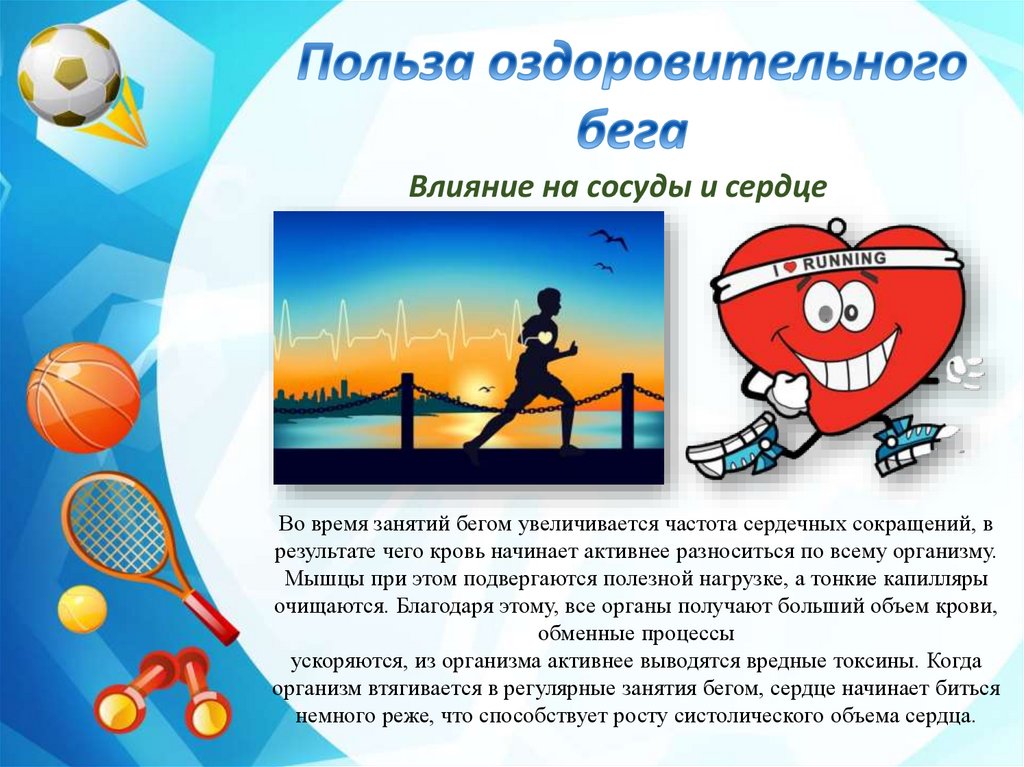 Влияние на сосуды и сердцеВо время занятий бегом увеличивается частота сердечных сокращений, в
