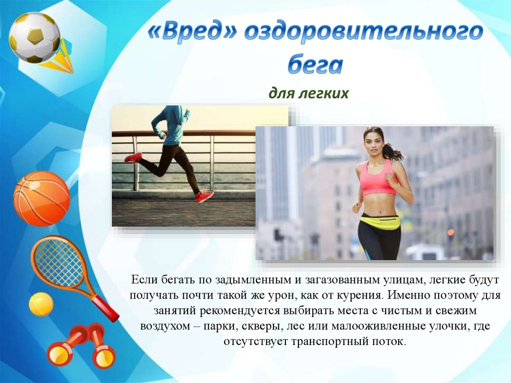 для легкихЕсли бегать по задымленным и загазованным улицам, легкие будут