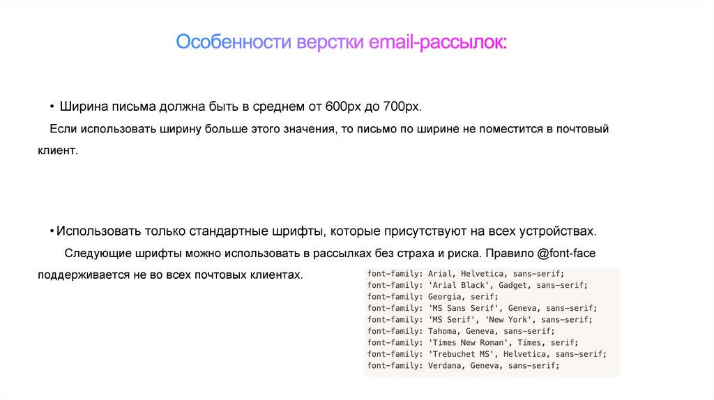 Следующие шрифты можно использовать в рассылках без страха и риска. Правило @font-face