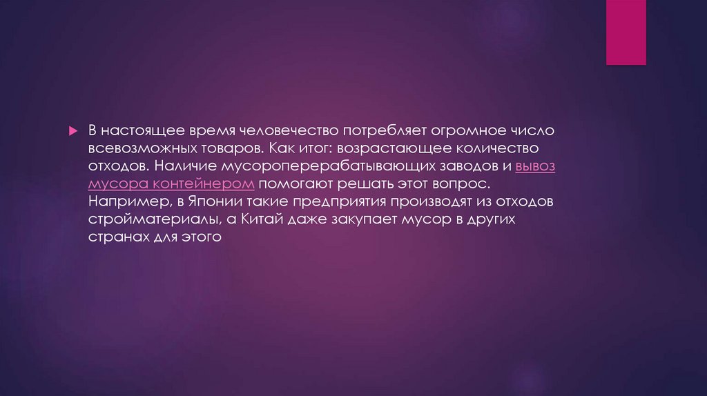 В настоящее время человечество потребляет огромное числовсевозможных товаров. Как итог: возрастающее количество