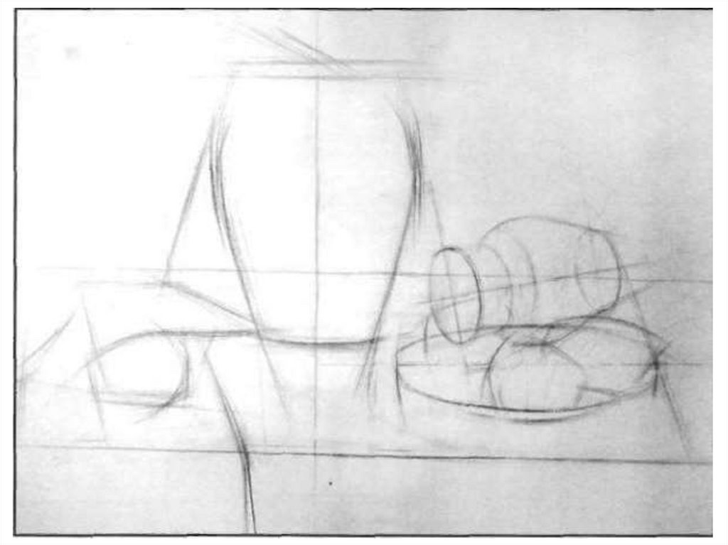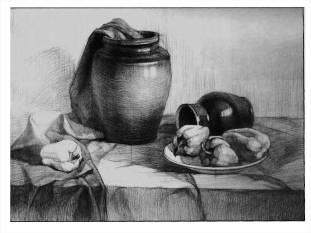Натюрморт с предметом цилиндрической формы в горизонтальном положении и драпировкой. Процесс рисования натюрмортов