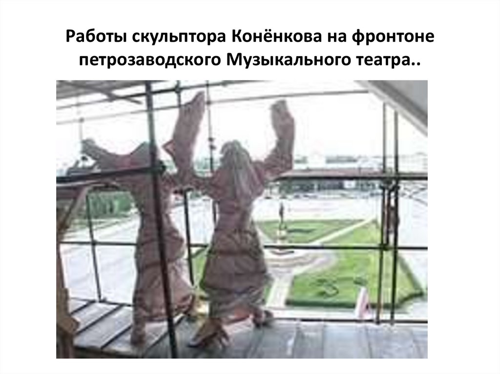 Работы скульптора Конёнкова на фронтонепетрозаводского Музыкального театра..