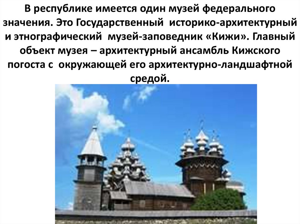 и этнографический музей-заповедник «Кижи». Главный