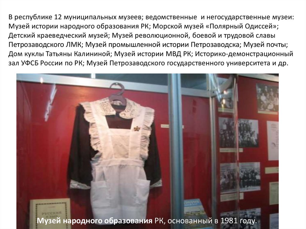 зал УФСБ России по РК; Музей Петрозаводского государственного университета и др.