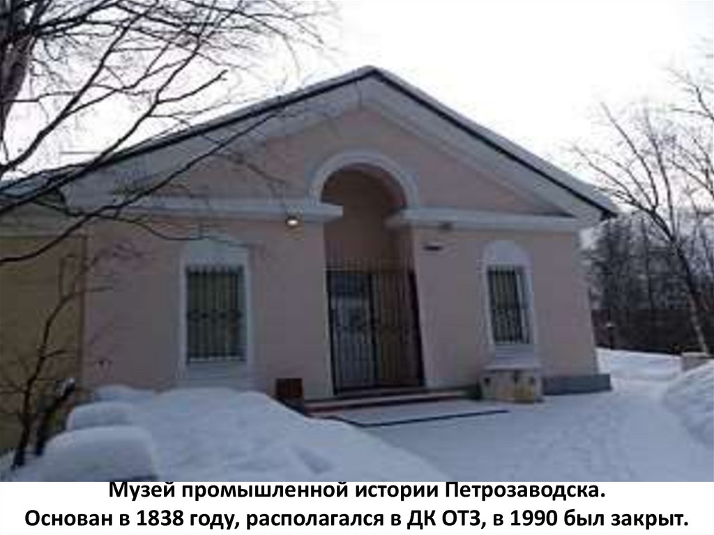 Музей промышленной истории Петрозаводска.Основан в 1838 году, располагался в ДК ОТЗ, в 1990 был закрыт.