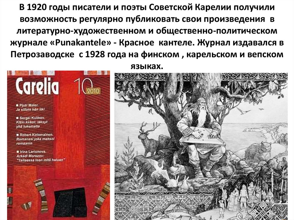 В 1920 годы писатели и поэты Советской Карелии получиливозможность регулярно публиковать свои произведения в