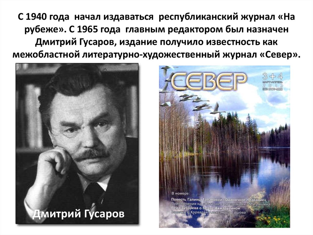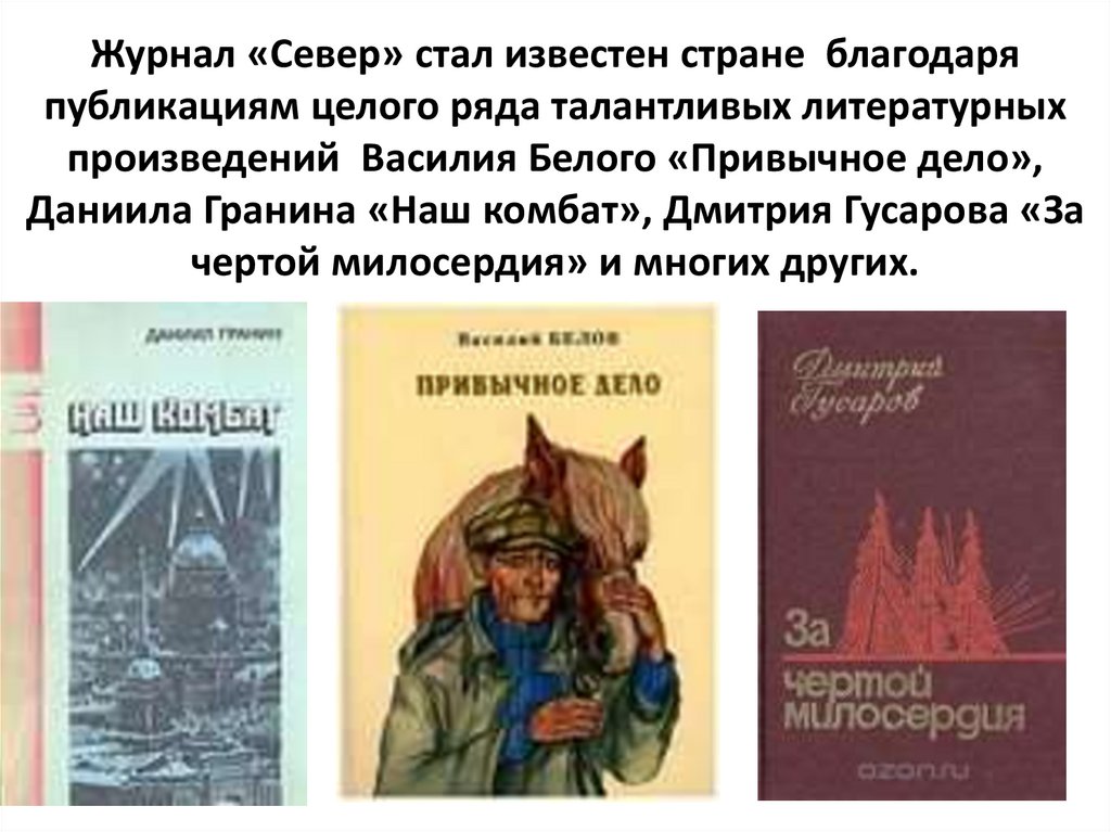 Журнал «Север» стал известен стране благодаряпубликациям целого ряда талантливых литературных