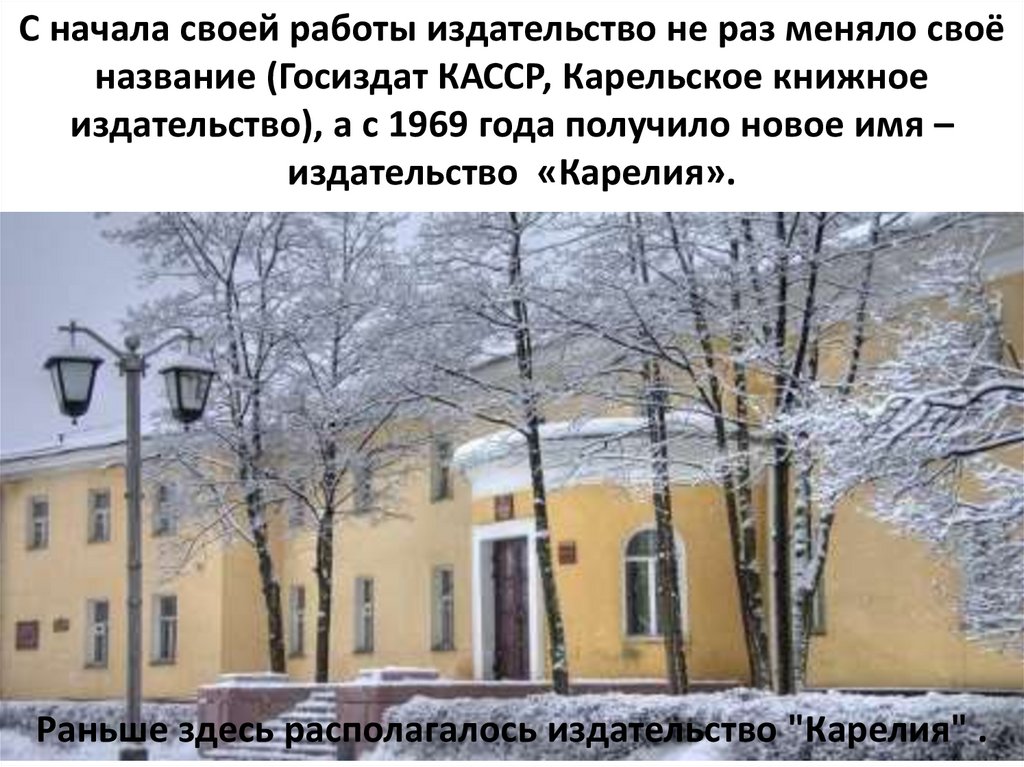 Раньше здесь располагалось издательство "Карелия" .