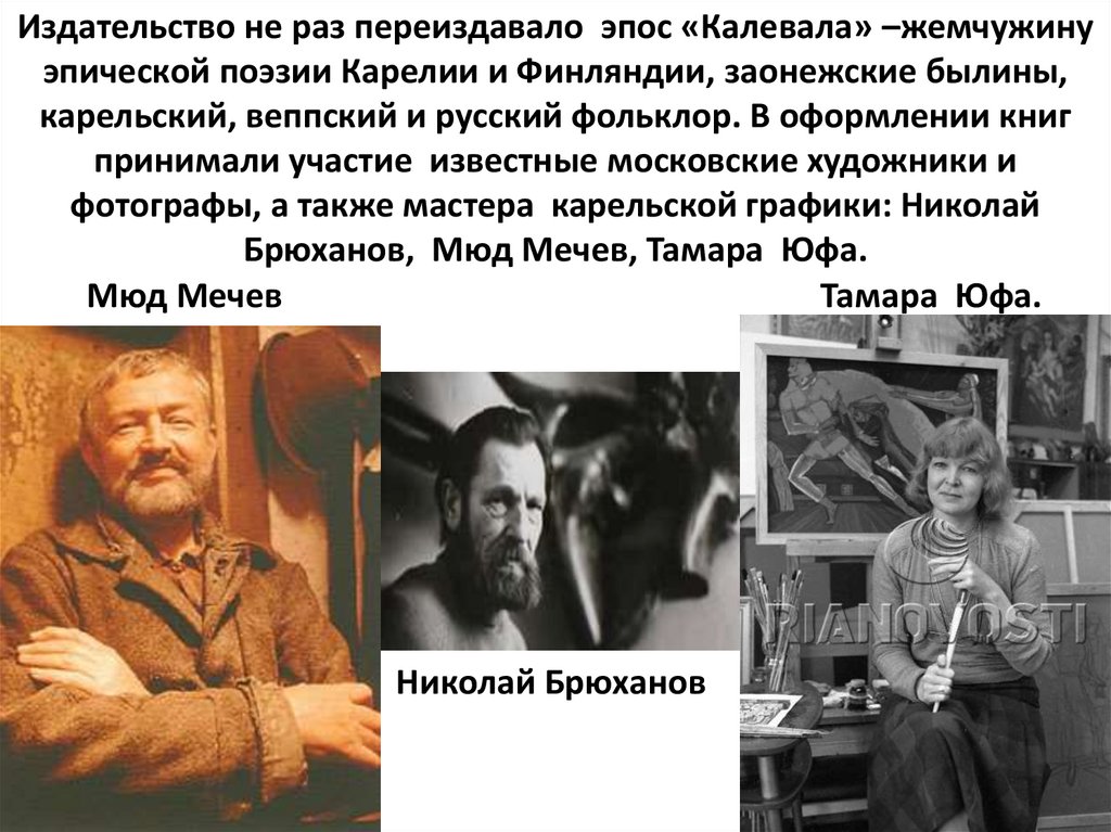 Издательство не раз переиздавало эпос «Калевала» –жемчужинуэпической поэзии Карелии и Финляндии, заонежские былины,