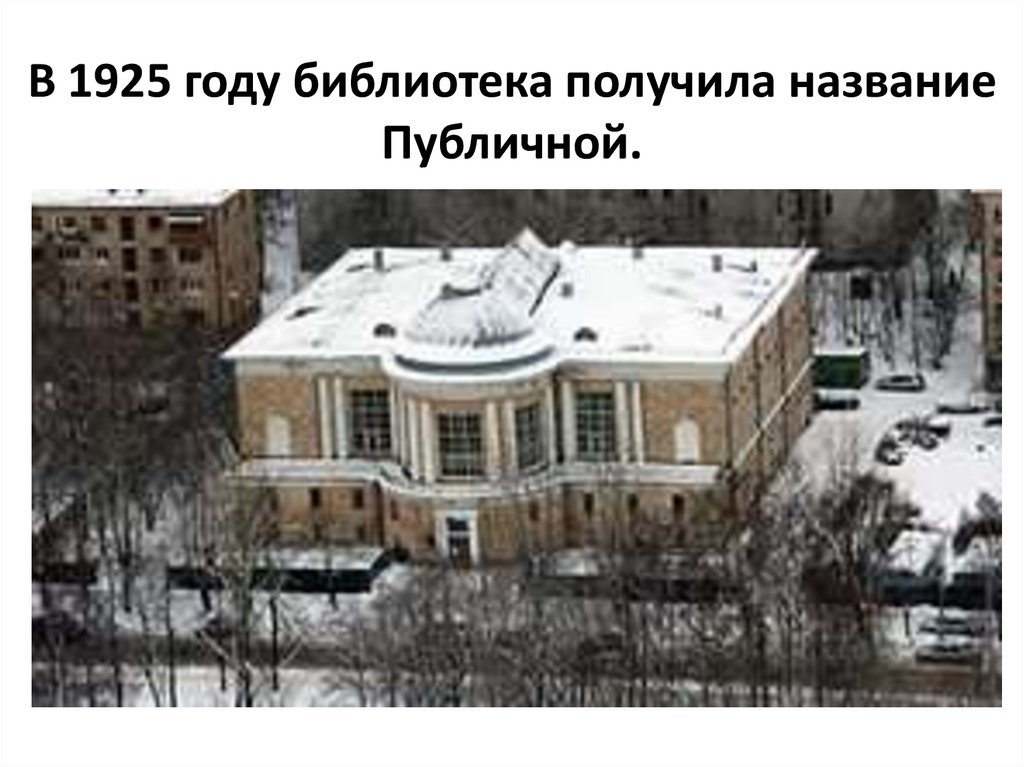 В 1925 году библиотека получила названиеПубличной.