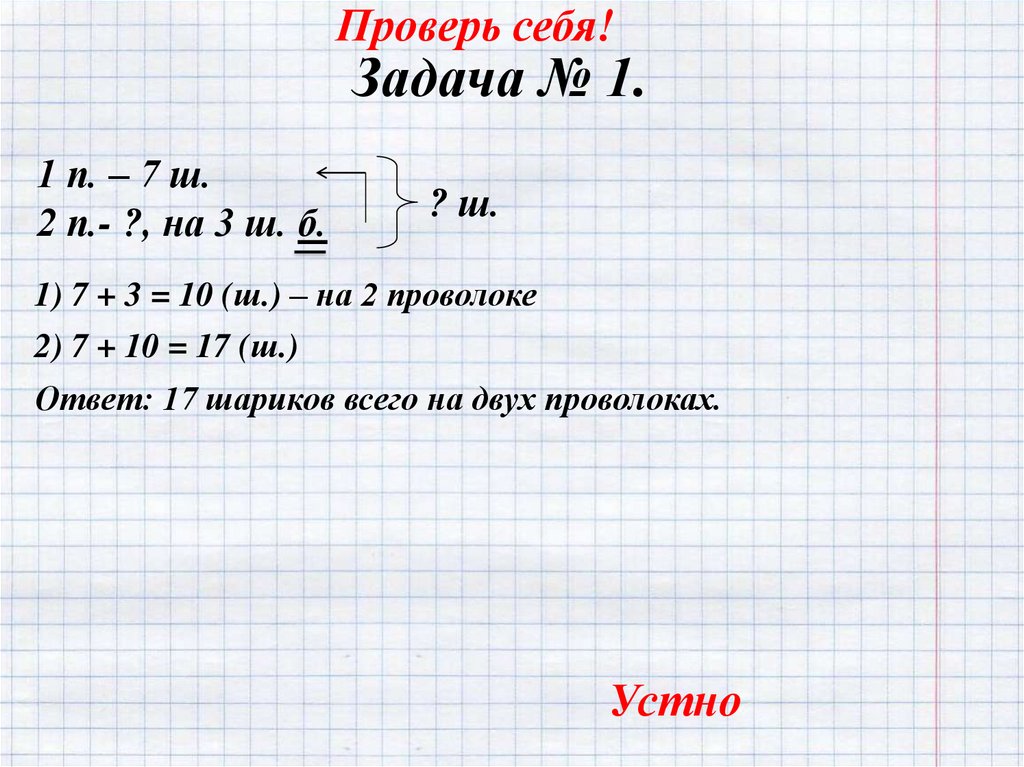 1. Узнаем, сколько шариков на второй проволоке.2. Узнаем, сколько шариков на двух проволоках.