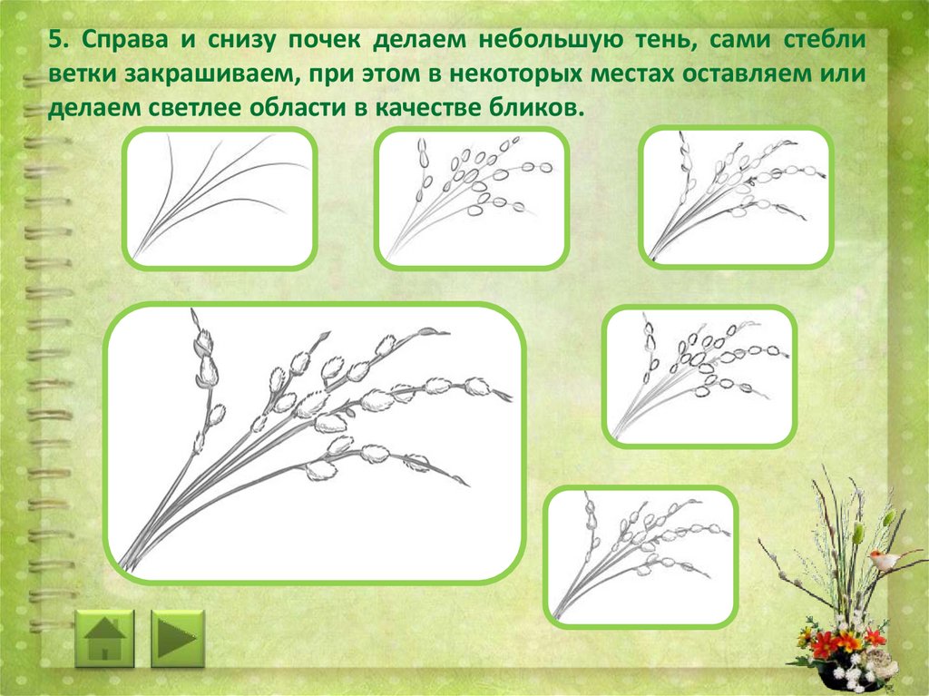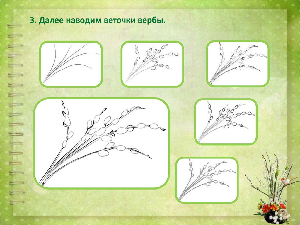 3. Далее наводим веточки вербы.7.