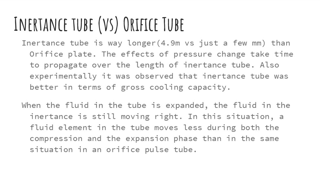 Inertance tube (vs) Orifice TubeInertance tube is way longer(4.9m vs just a few mm) than