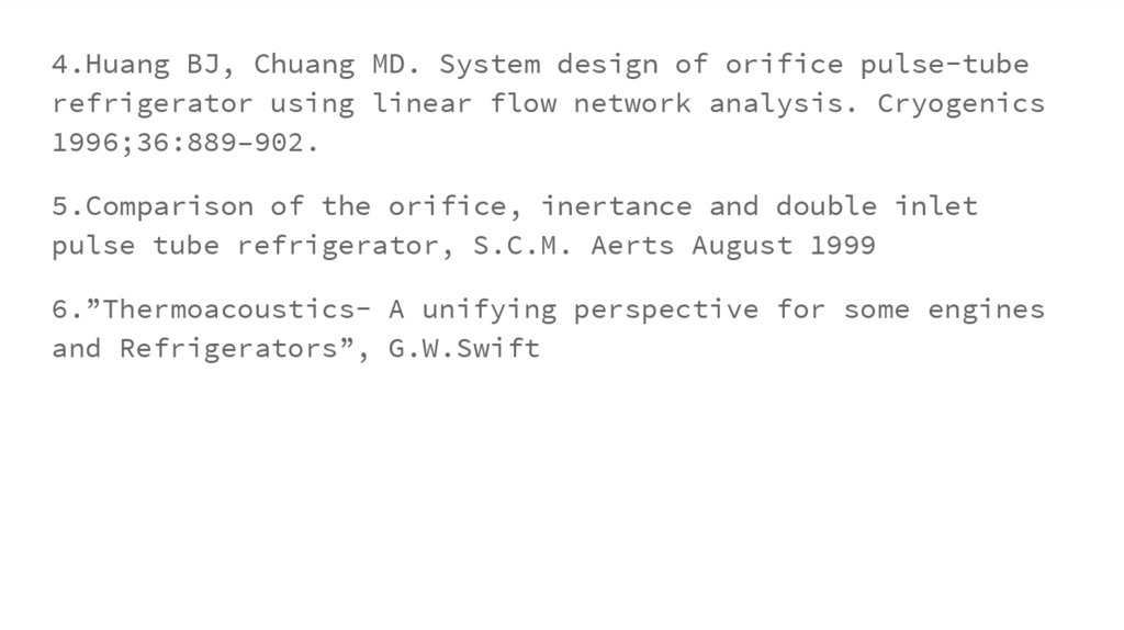 4.Huang BJ, Chuang MD. System design of orifice pulse-tuberefrigerator using linear flow network analysis. Cryogenics
