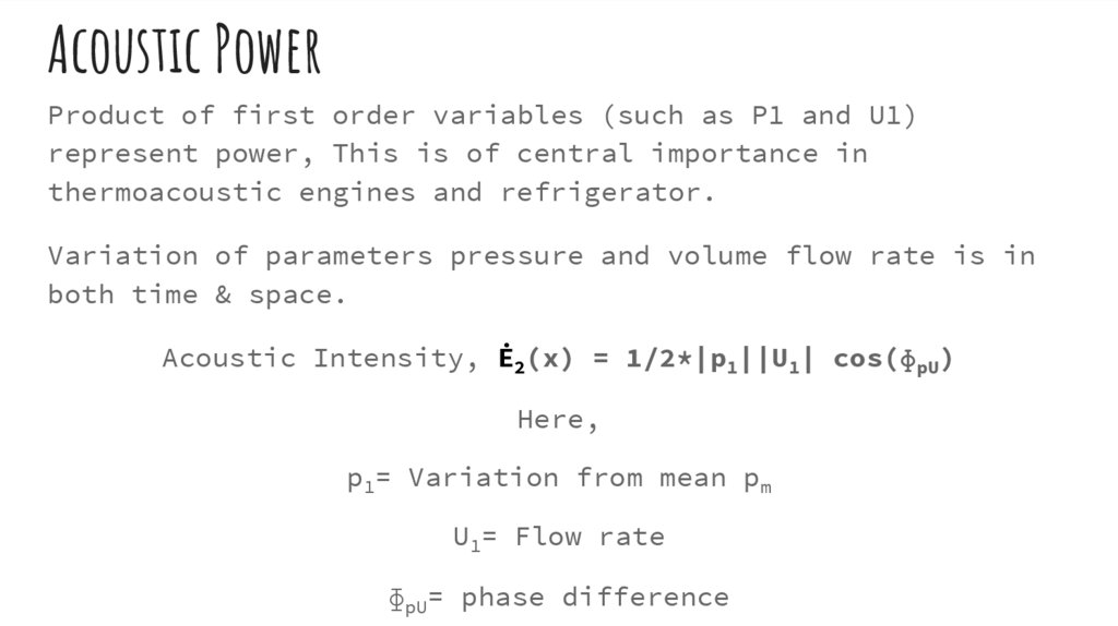 Acoustic PowerProduct of first order variables (such as P1 and U1)
