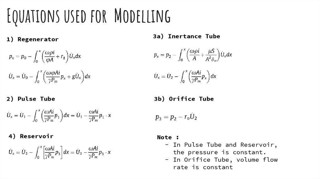 Equations used for Modelling1) Regenerator