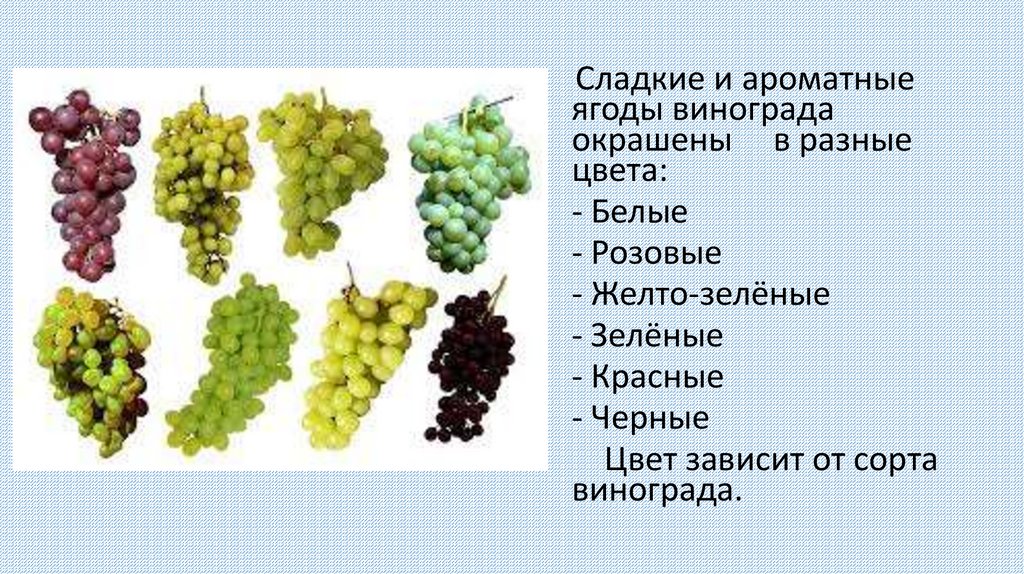 Виноград- это небольшой кустарник, на которомрастут вкусные ягоды.