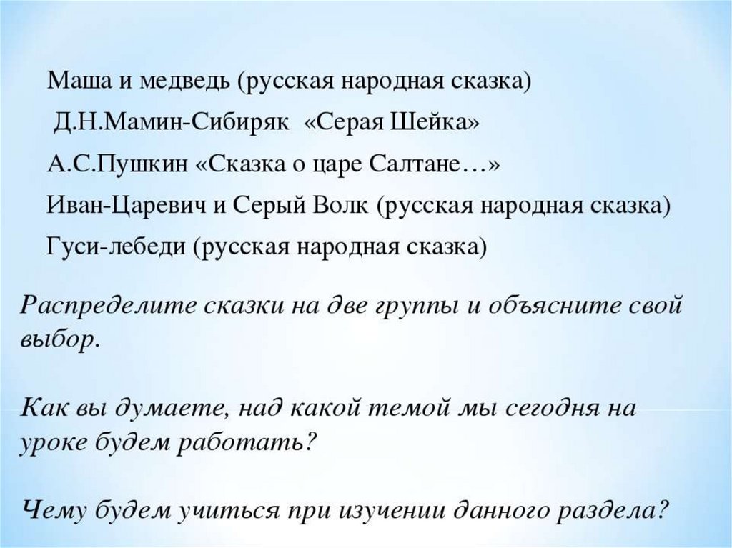 Сказка. Фольклорная и литературная