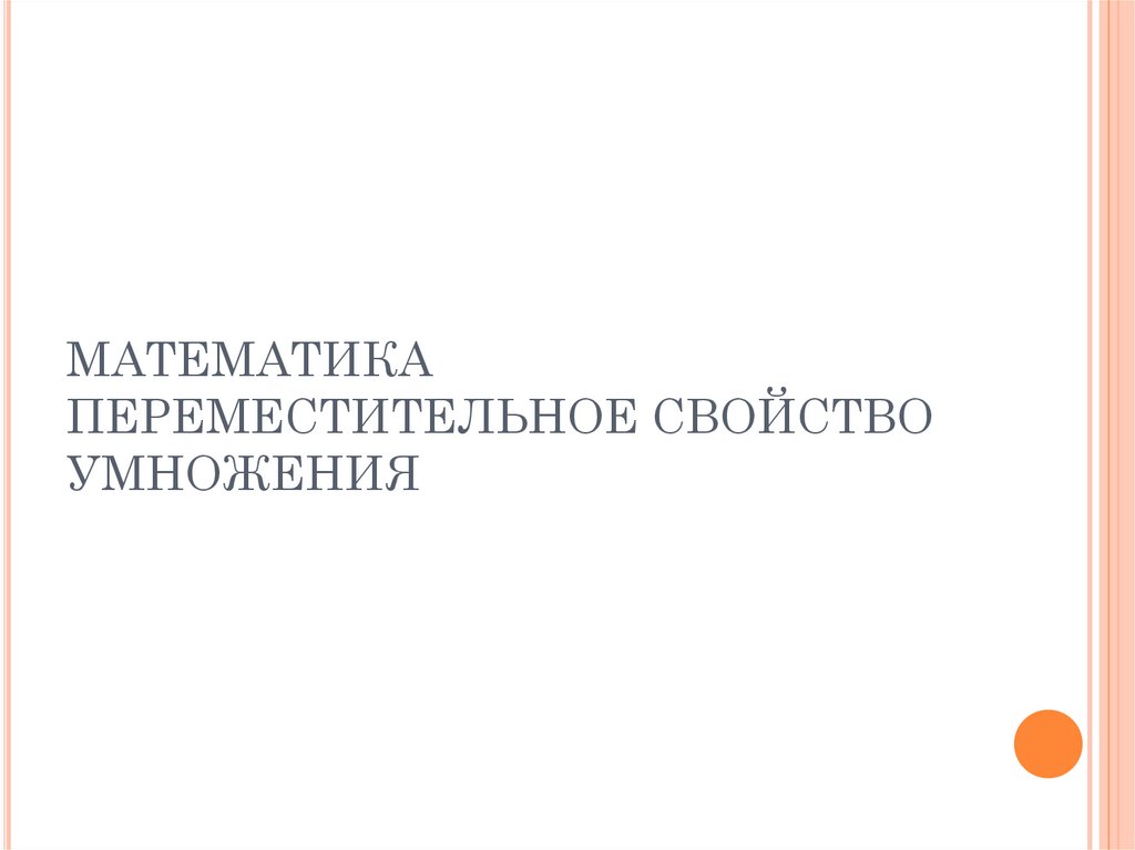 1. МАТЕМАТИКА ПЕРЕМЕСТИТЕЛЬНОЕ СВОЙСТВО УМНОЖЕНИЯ