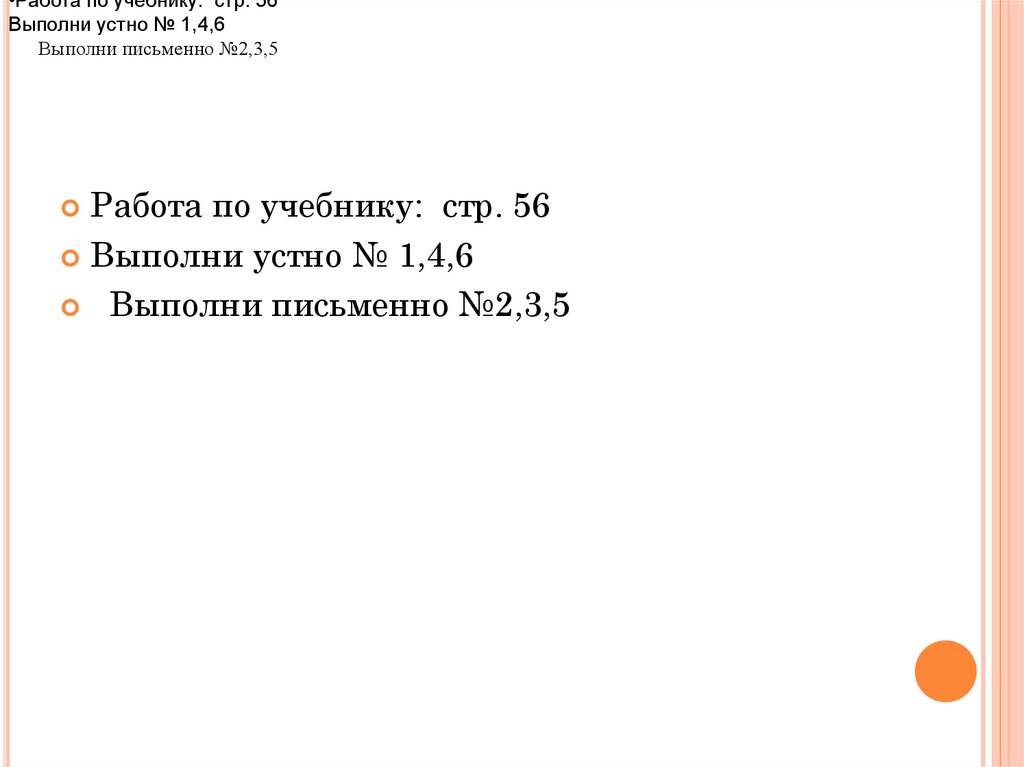 •Работа по учебнику: стр. 56Выполни устно № 1,4,6