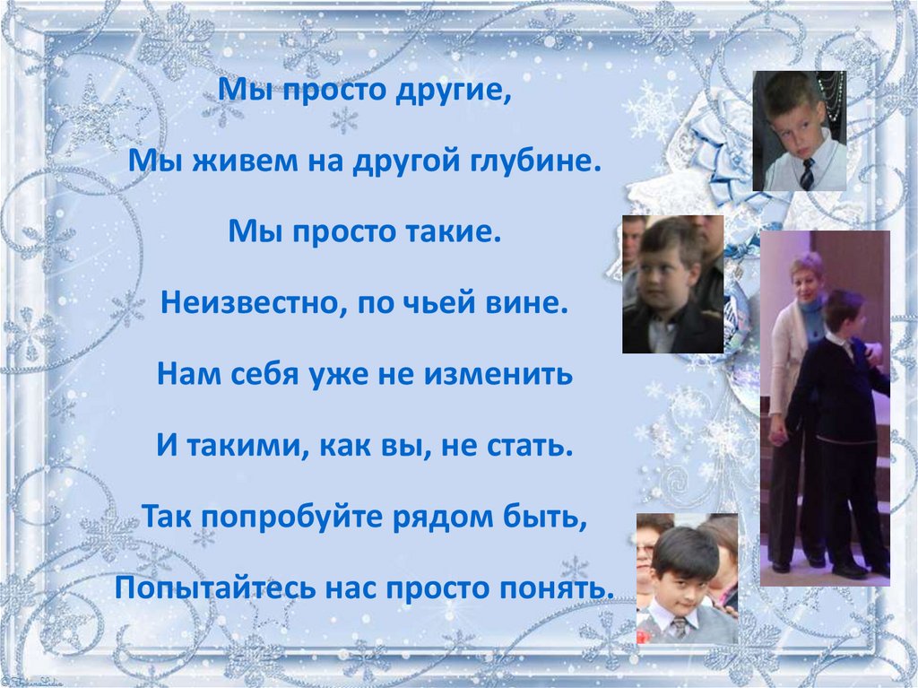 Мы просто другие,Мы живем на другой глубине.