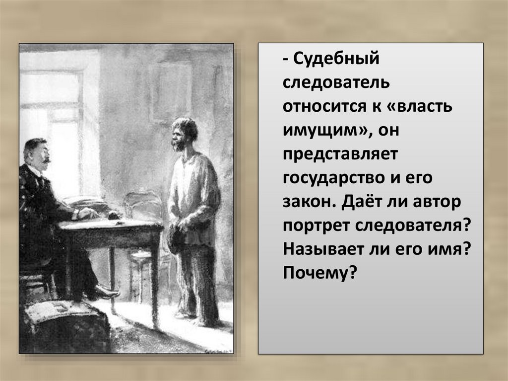 • Чехов показывает забитого и неграмотногомужика, пойманного на месте преступления за