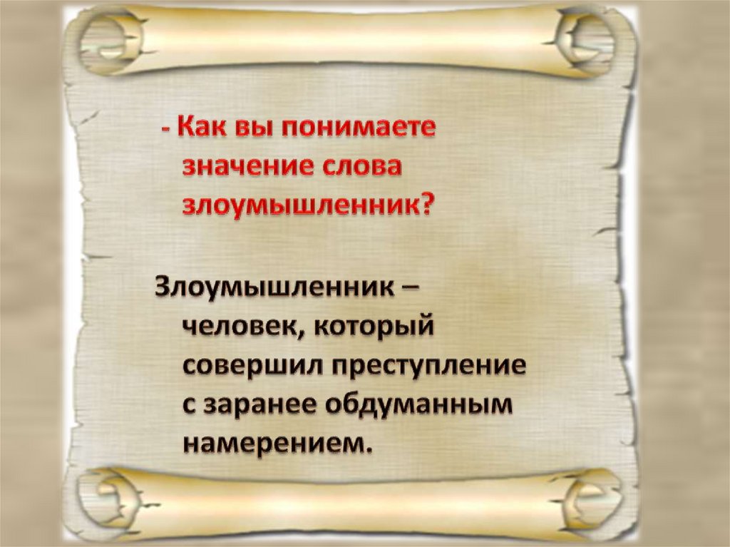 • Название рассказа «Злоумышленник»звучит как насмешка и осуждение