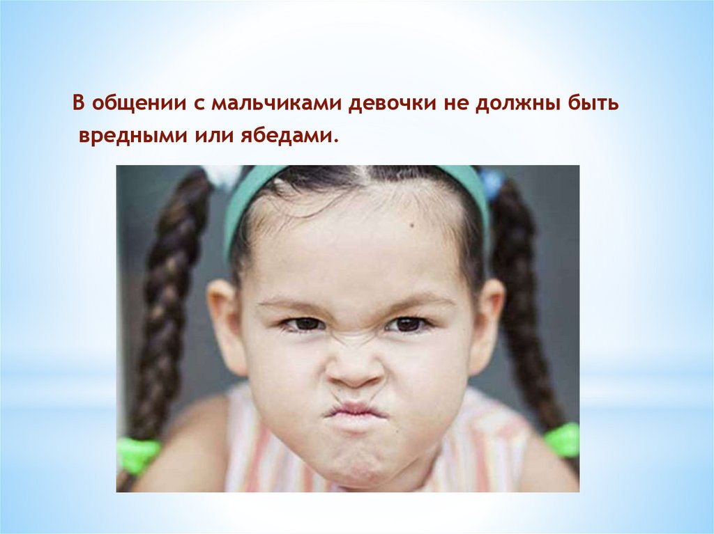 В общении с мальчиками девочки не должны бытьвредными или ябедами.