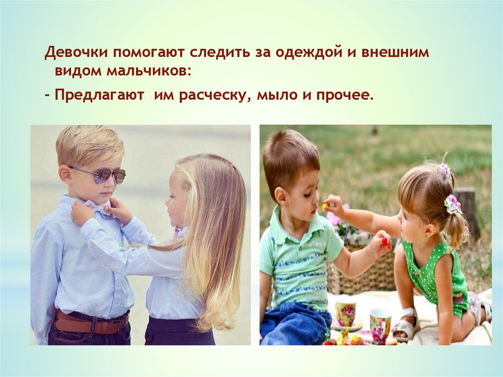 Девочки помогают следить за одеждой и внешнимвидом мальчиков: