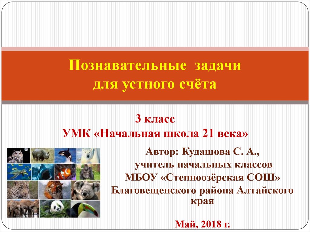 1. Познавательные задачи для устного счёта 3 класс УМК «Начальная школа 21 века»
