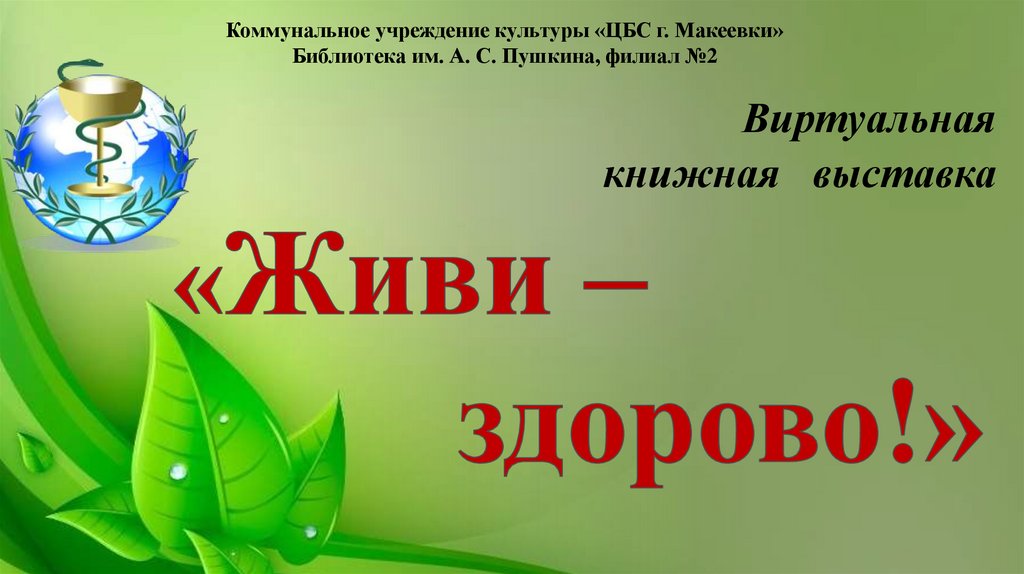 Коммунальное учреждение культуры «ЦБС г. Макеевки»Библиотека им. А. С. Пушкина, филиал №2