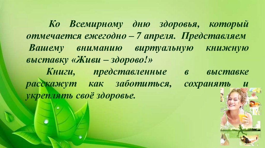 Ко Всемирному дню здоровья, которыйотмечается ежегодно – 7 апреля. Представляем