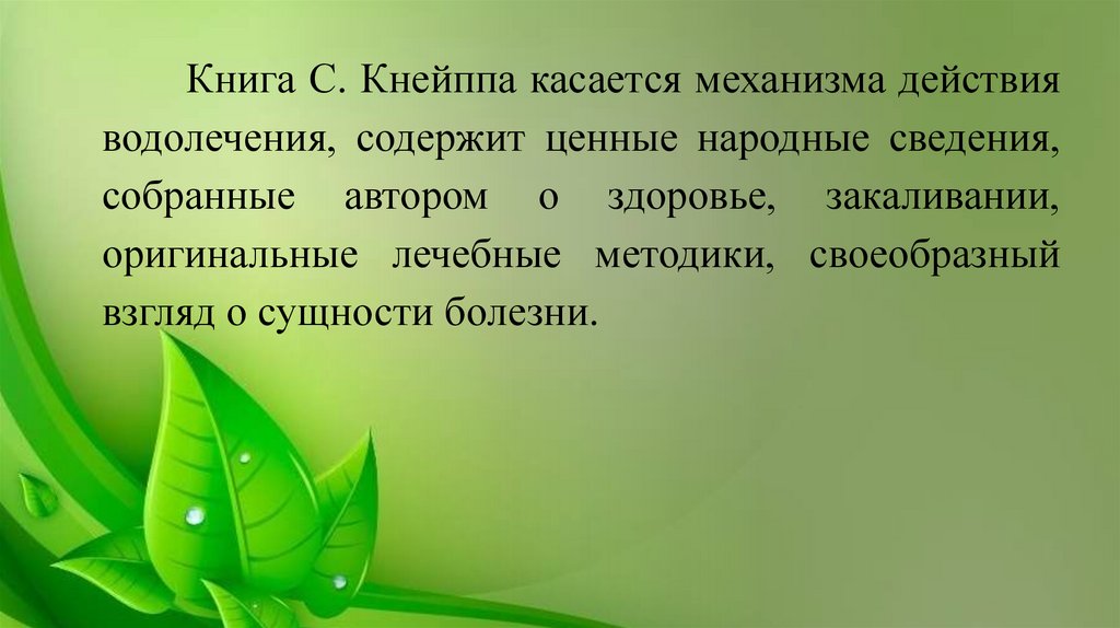 Книга С. Кнейппа касается механизма действияводолечения, содержит ценные народные сведения,