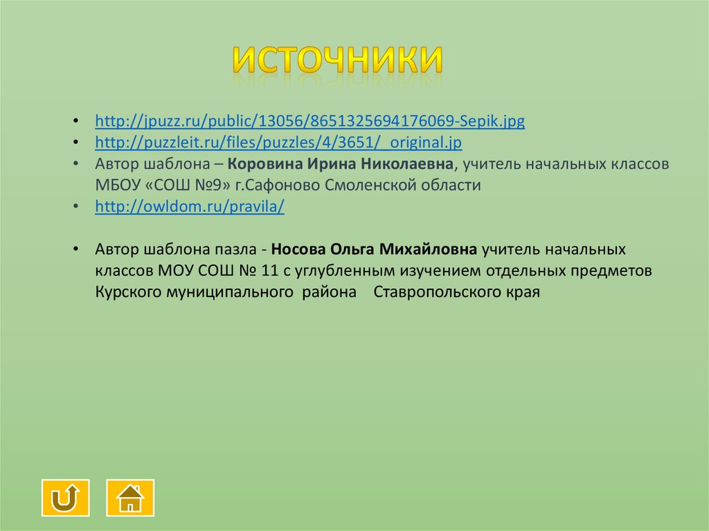• Автор шаблона пазла - Носова Ольга Михайловна учитель начальных